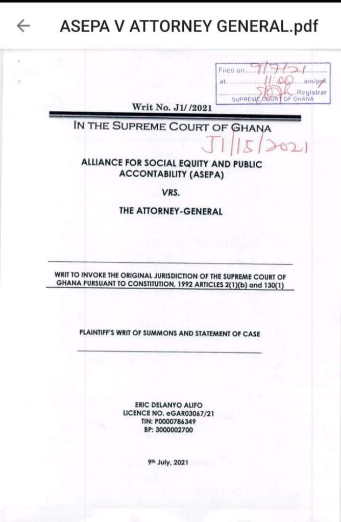 Among other things ASEPA is requesting the Supreme Court to make a declaration that the Prof.Ntiamoah Baidoo Committee did not have the capacity to make recommendations for persons outside Article 71.