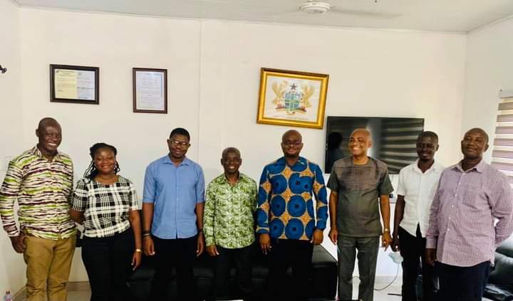 The District Chief Executive for Afadzato South received a team from the Railway Ministry led by the chief director Mr. Desmond Boateng and the technical advisor to the Minister Mr.Allan Dogah in his office on Thursday the 22nd of July, 2021.