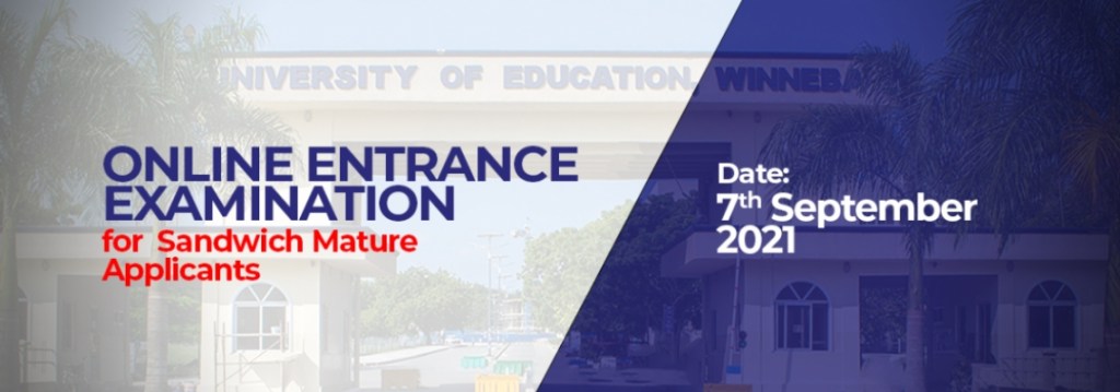 Applicants who applied for Admission into SANDWICH PROGRAMMES using the MATURE ENTRY MODE option are being invited to write an Online Entrance Examination on the UEW Entrance Exam Platform on the 7th of September, 2021.