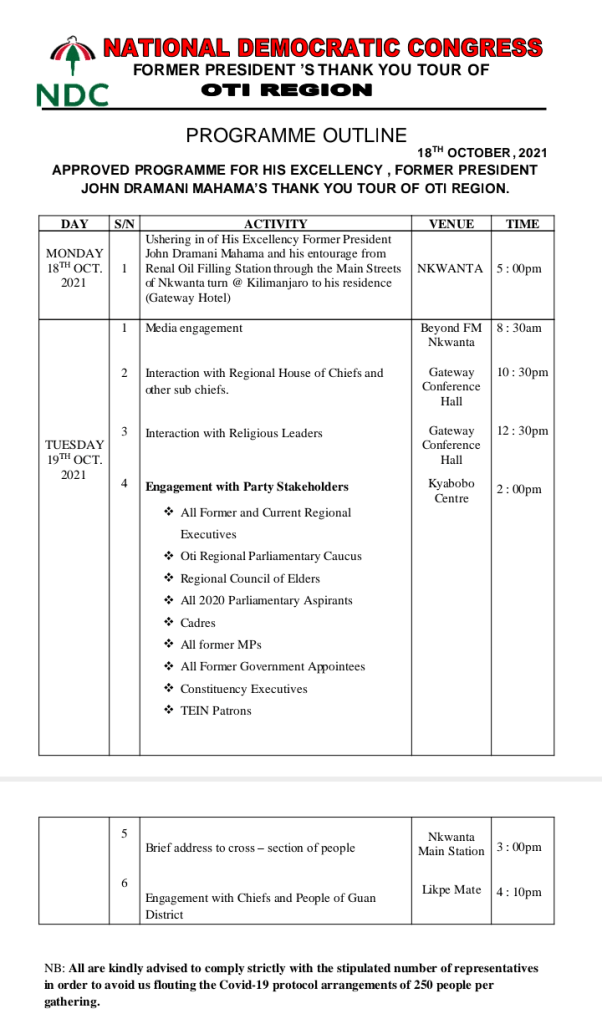 Below is an attached detailed program of his thank you tour in Oti Region.
