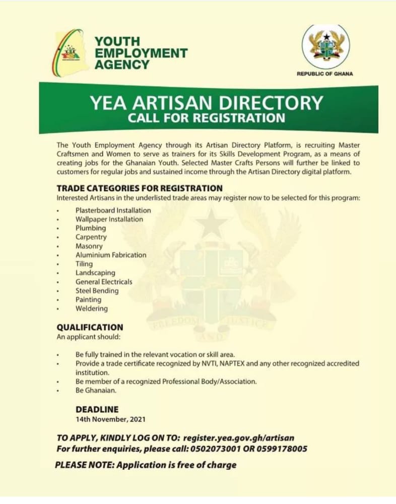 Job: YEA ARTISAN DIRECTORY CALL FOR REGISTRATION