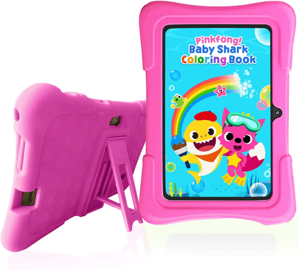 Additionally, the tablet is designed with a shockproof kickstand case to protect it from drops and bumps, making it durable and long-lasting. This makes it ideal for use in school or on the go. The tablet also comes with pre-installed apps and games that are designed to promote learning and development in a fun and engaging way.