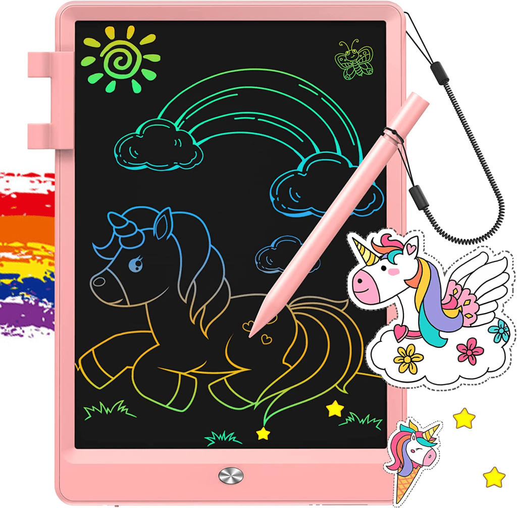 The FLUESTON Toys for Girls Boys LCD Kids Writing Tablet is a 10-inch drawing pad that comes with a colorful screen and a doodle learning board for preschool kids. It’s a perfect travel gift for girls and boys, and it’s designed to provide a fun and interactive way for kids to learn and explore.