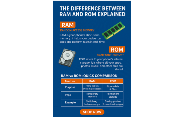 When buying a new smartphone, you’ve probably come across terms like RAM and ROM—but what exactly do they mean? And more importantly, how do they affect your phone’s performance?