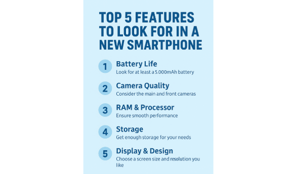 Whether you’re buying your first smartphone or upgrading your current one, here are the top 5 features you should always look out for to make the best choice for your lifestyle and budget.