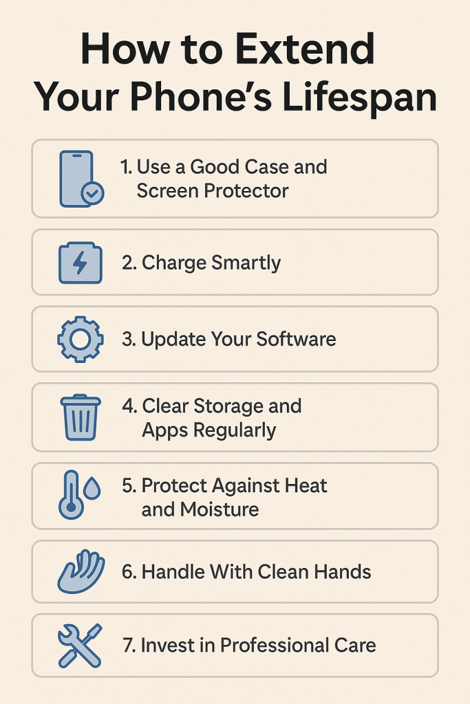 Investing in a high-quality case and tempered glass screen protector can save your phone from costly cracks, dents, and internal damage. Prevention is always cheaper than repair.