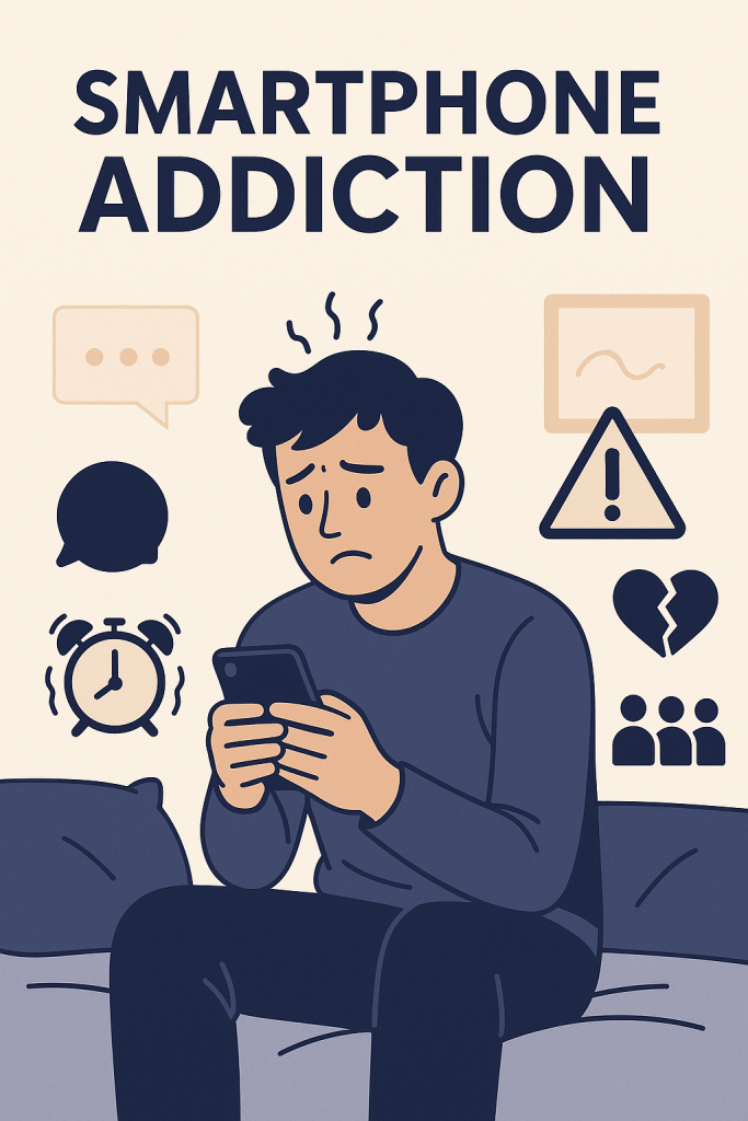Smartphone addiction is a growing behavioral health concern where individuals experience anxiety, reduced productivity, and impaired social interactions due to excessive and uncontrolled use of mobile devices.