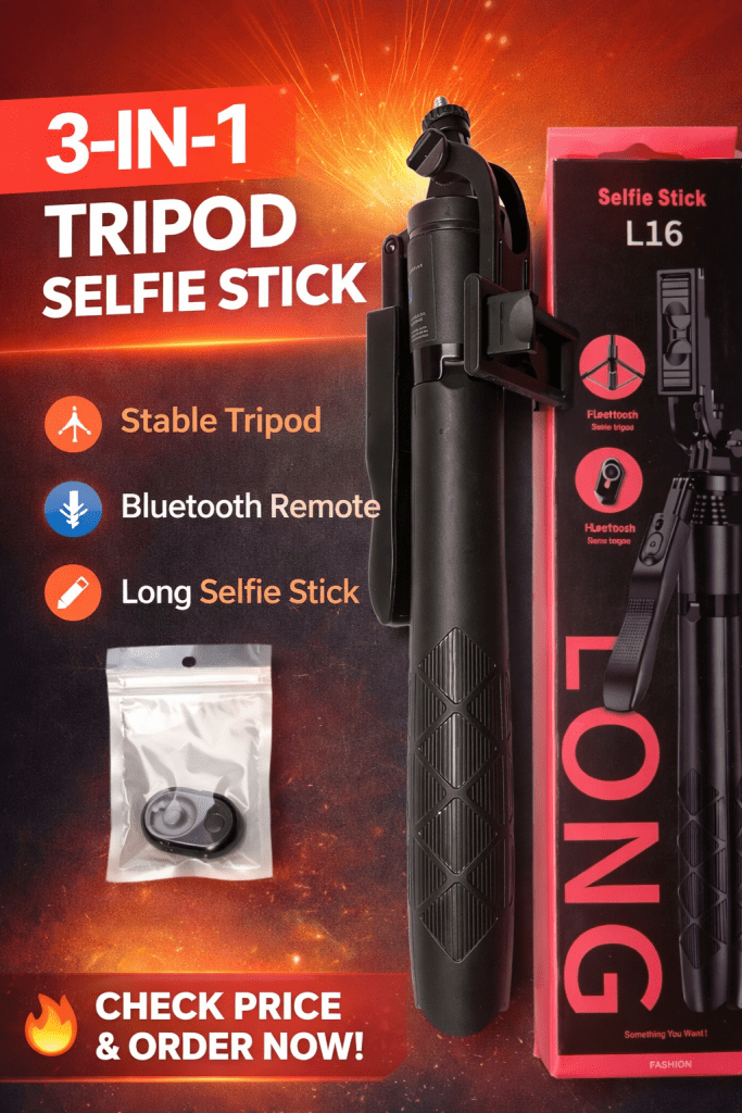 Stop struggling with shaky videos, awkward angles, or asking strangers to take your photos. This 3-in-1 Smartphone Tripod with Bluetooth Remote & Long Selfie Stick gives you complete control of your content — whether you’re taking selfies, shooting videos, or going live.